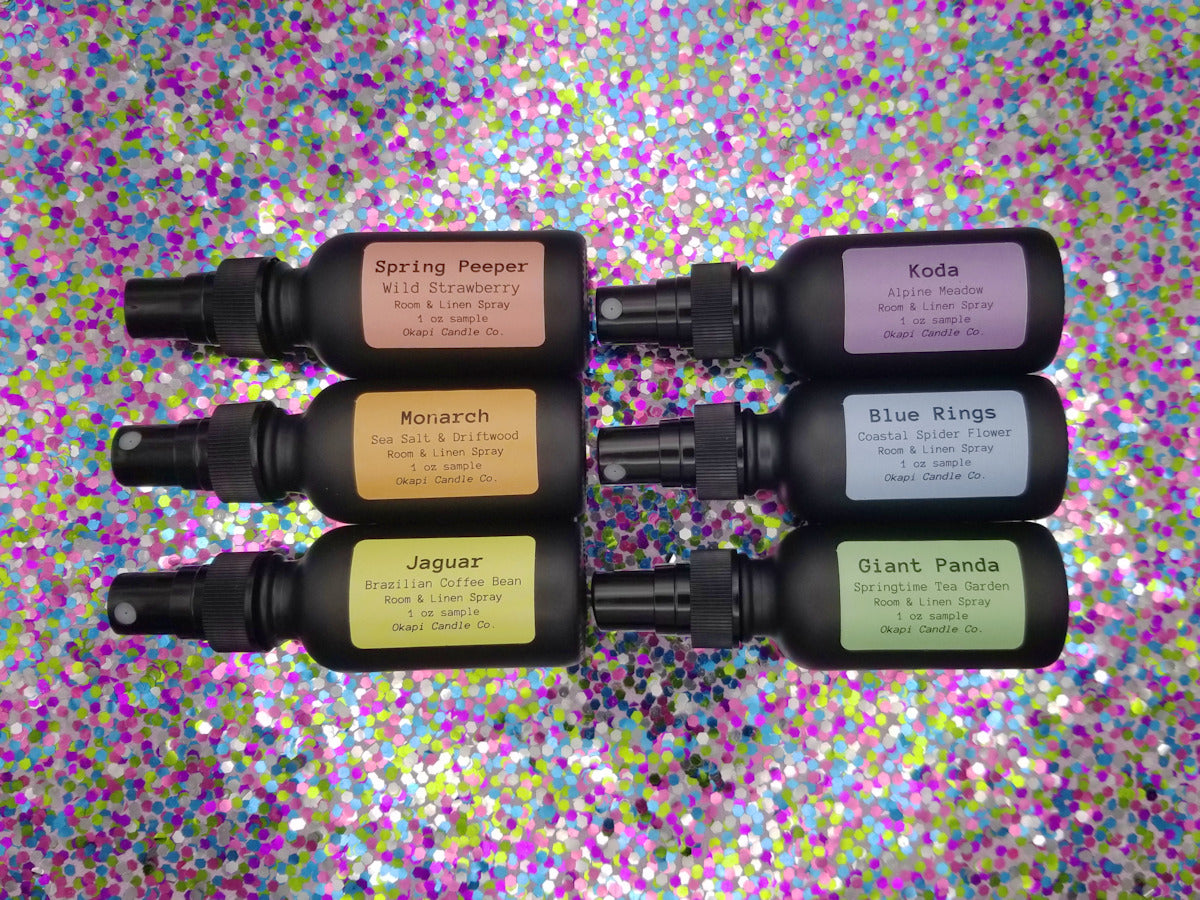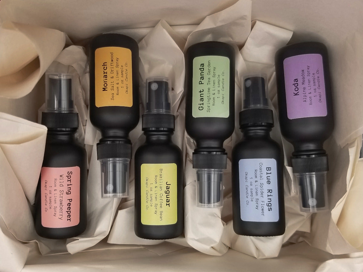 We have a LOT of scents--so it's okay if you don't know where to start! This bundle includes six 1 oz. room spray samples of our best-selling scents to help guide you towards your next purchase. Whether you're a first-time visitor to the site or trying to find a gift for a new friend, our pack of top picks is sure to help you take the next step on your fragrance journey!