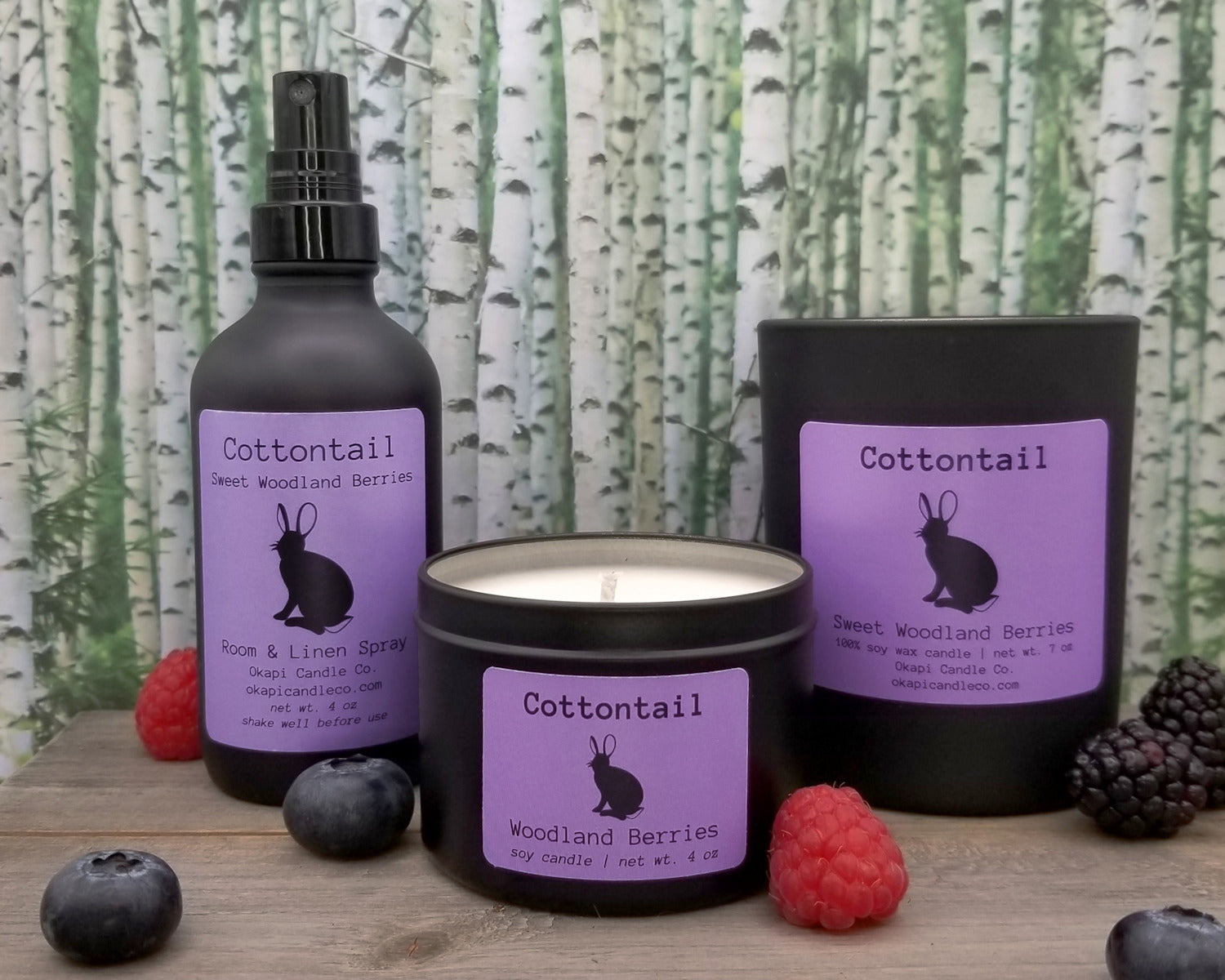 Along the forest floor grow bright wild berries along their ever-expanding bushes and vines. Within the thicket hides the cottontail rabbit: soft, warm, and well-fed. The fragrance of sweet, sun-ripened berries will fill your home with a gentle, nostalgic sensation.