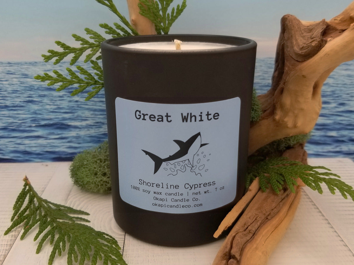Great White Shark Soy Candle - Shoreline Cypress Fragrance